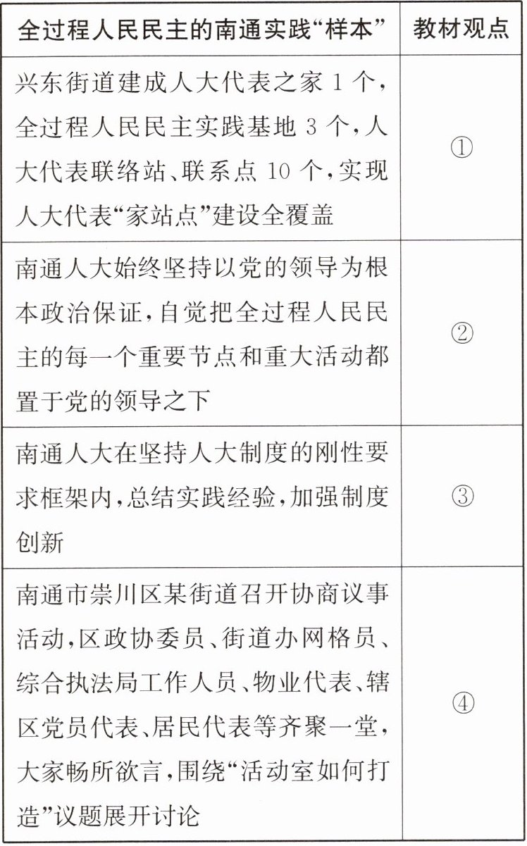解码全过程人民民主的南通实践“样本”,完成上述表格。