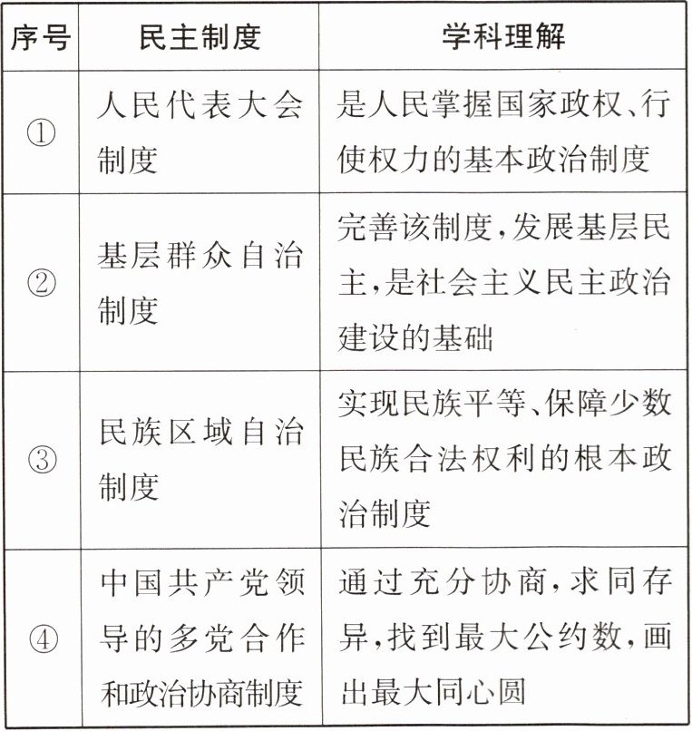 |①|人民代表大会制度|是人民掌握国家政权、行使权力的基本政治制度|