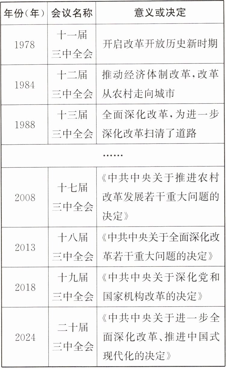 (2)从党的历届三中全会的意义或决定看我国的改革,你能得出哪些结论?