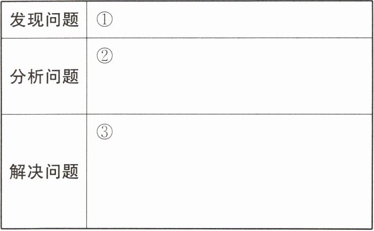 (3)请你根据材料,选取其中一个问题按照“发现问题→分析问题→解决问题”的思路,完成下表。