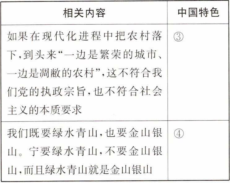 | 如果在现代化进程中把农村落下,到头来“一边是繁荣的城市、一边是凋敝的农村”,这不符合我们党的执政宗旨,也不符合社会主义的本质要求 | ③______ |