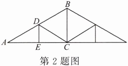 2. 如图是屋架设计图的一部分,其中∠A = 30°,点D是斜梁AB的中点,BC,DE垂直于横梁AC,AB = 16 m,则DE的长为( )。