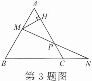3. 如图,在等边△ABC中,点M为AB边上任意一点,延长BC至点N,使CN= AM,连接MN交AC于点P,MH⊥AC于点H。求证:MP= NP。