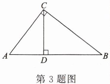 3. 如图,$CD是Rt\triangle ABC斜边AB$上的高,$CB > CA$,图中相等的角共有( )。