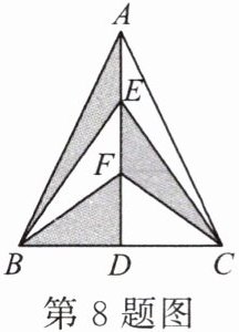 8. 如图,在 $\triangle ABC$ 中,$AB = AC$,$AD$ 是 $BC$ 边上的高,点 $E$,$F$ 是 $AD$ 的三等分点,若 $\triangle ABC$ 的面积为 12,则图中 $\triangle BEF$ 的面积为 ______。