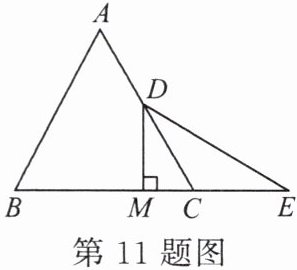 11. (13分)如图,已知等边 $\triangle ABC$ 中,$D$ 是 $AC$ 的中点,$E$ 是 $BC$ 延长线上的一点,且 $CE = CD$,$DM \perp BC$,垂足为 $M$。求证:$M$ 是 $BE$ 的中点。