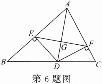6. 如图,$AD$ 是 $\triangle ABC$ 的角平分线,$DE$,$DF$ 分别是 $\triangle ABD$ 和 $\triangle ACD$ 的高,连接 $EF$ 交 $AD$ 于点 $G$。下列结论正确的为( )。