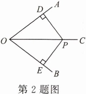 2. 如图,$\angle AOC= \angle BOC$,点$P在OC$上,$PD\perp OA于点D$,$PE\perp OB于点E$。若$OD = 8$,$OP = 10$,则$PE$的长为( )。