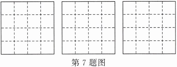 7. 如图,在$4×4$的正方形网格中,每个小正方形的边长都为1。请在给定网格中分别画出长度为$\sqrt{17}$,$\sqrt{13}$,$\sqrt{20}$的线段。