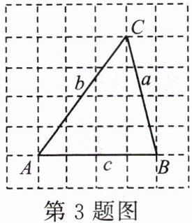 3. 如图,每个小正方形的边长为1,在$\triangle ABC的三边a$,$b$,$c$中,无理数是( )。