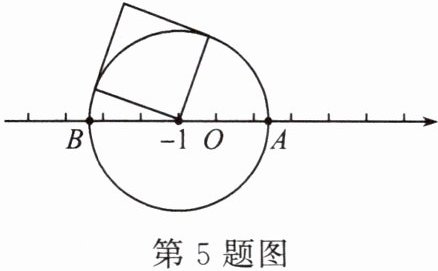 5. 如图,将面积为$5$的正方形放在数轴上,以表示$-1$的点为圆心,以正方形的边长为半径作圆,交数轴于点$A,B$两点,则点$A,B$表示的数分别为______。
