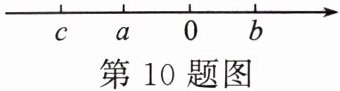 10. 已知实数$a,b,c$在数轴上的位置如图所示,且$|a| = |b|$,化简$|a| + |a + b| - |c - a| - 2|c|$。