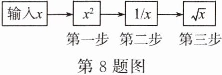 8. 如图,某计算器中有$\sqrt{\ }$、$1/x$、$x^2$三个按键,以下是这三个按键的功能。