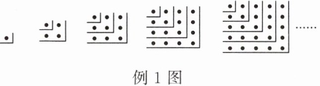 例1 找规律是解决数学问题的一种重要的手段,而规律的找寻既需要敏锐的观察力,又需要严密的逻辑推理能力。观察如图所示的点阵图和相应的等式,探究其中的规律: