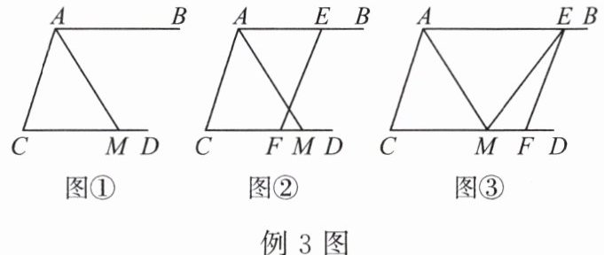 例3 【感知】如图①,若$AB // CD$,$AM平分\angle BAC$,求证:$\angle CAM = \angle CMA$。