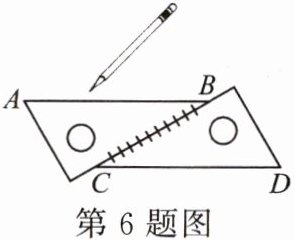 6. 如图,小明利用两块相同的三角板,分别在三角板的边缘画直线$AB和CD$,并由此判定$AB // CD$,这是根据______,两直线平行。