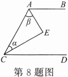 8. 已知:如图,$AE平分\angle BAC$,$CE平分\angle ACD$,且$\angle \alpha + \angle \beta = 90^{\circ}$。