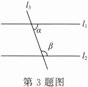 3. 如图,直线$l_{1}$,$l_{2}被l_{3}所截得的同旁内角为\alpha$,$\beta$,要使$l_{1} // l_{2}$只要使( )。
