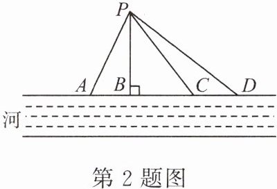 2. 如图所示,计划在河边的A,B,C,D处,引水到P处,从何处引水,能使所用的水管最短( )。