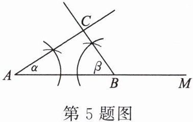 ①在射线$CM上截取CA = b$;②作一条线段$BC = a$;③以$C$为顶点,以$CB$为一边,作$∠BCM = ∠α$;④连接$AB$,$△ABC$就是所要求作的三角形。