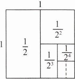 6. 在数学兴趣小组活动中,小明为了求$\frac{1}{2} + \frac{1}{2^{2}} + \frac{1}{2^{3}} + \frac{1}{2^{4}} + … + \frac{1}{2^{n}}$的值,在边长为1的正方形中,设计了如图所示的几何图形。则$\frac{1}{2} + \frac{1}{2^{2}} + \frac{1}{2^{3}} + \frac{1}{2^{4}} + … + \frac{1}{2^{n}}$的值为____(结果用n表示)。