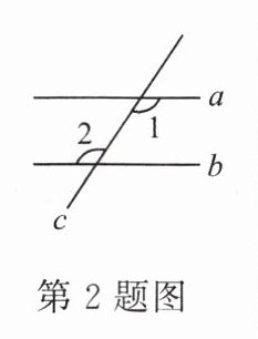 2. 如图,直线a,b被第三条直线c所截。由“$∠1 = ∠2$”,得到“$a// b$”的依据是( )。