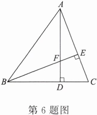 6. 如图,$\triangle ABC的两条高AD$,$BE相交于点F$,请添加一个条件,使得$\triangle ADC\cong\triangle BEC$(不添加其他字母及辅助线),你添加的条件是______。
