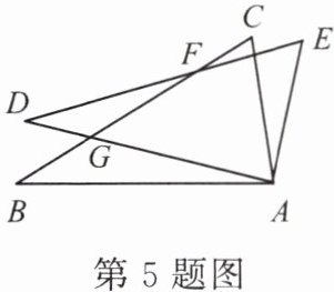5. 如图,$\triangle ABC\cong\triangle ADE$,$\angle DAC = 60^{\circ}$,$\angle BAE = 100^{\circ}$,$BC$,$DE相交于点F$,则$\angle DFB$的度数为______。