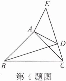4. 已知:如图,在 $ \triangle ABC $ 和 $ \triangle ADE $ 中,$ \angle BAC = \angle DAE = 90° $,$ AB = AC $,$ AD = AE $,点 $ C $,$ D $,$ E $ 三点在同一直线上,连接 $ BD $,则下列结论错误的是( )。