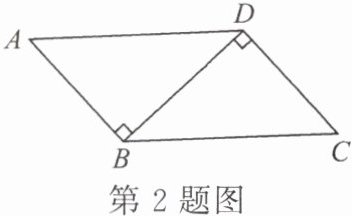 2. 如图,已知 $ AB \perp BD $,$ CD \perp BD $,若用“HL”判定 $ Rt \triangle ABD $ 和 $ Rt \triangle CDB $ 全等,则需要添加的条件是( )。