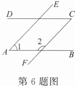 6. 如图,因为 $ \angle 1 + \angle 2 = 180° $(已知),所以______//______( )。