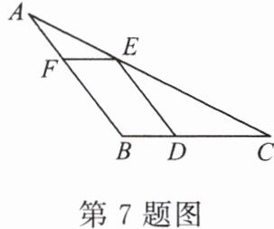 7. 如图,在三角形 $ ABC $ 中,$ E $ 是 $ AC $ 上一点,$ EF // BC $,交 $ AB $ 于点 $ F $,$ D $ 是 $ BC $ 上一点,$ \angle AFE = \angle CDE $。