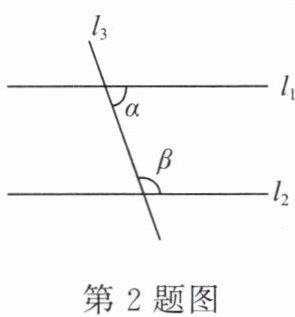2. 如图,直线 $ l_1 $,$ l_2 $ 被 $ l_3 $ 所截得的同旁内角为 $ \alpha $,$ \beta $,要使 $ l_1 // l_2 $ 只要使( )。