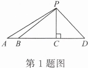 1. 如图,点 $ B $ 和 $ C $ 在线段 $ AD $ 上,$ PA = 7.2 $,$ PB = 6 $,$ PC = 3.6 $,$ PD = 4.8 $,则点 $ P $ 到线段 $ AD $ 的距离是( )。