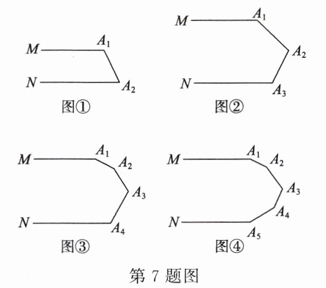 如图③,$ MA_1 // NA_4 $,则 $ \angle A_1 + \angle A_2 + \angle A_3 + \angle A_4 = $____,