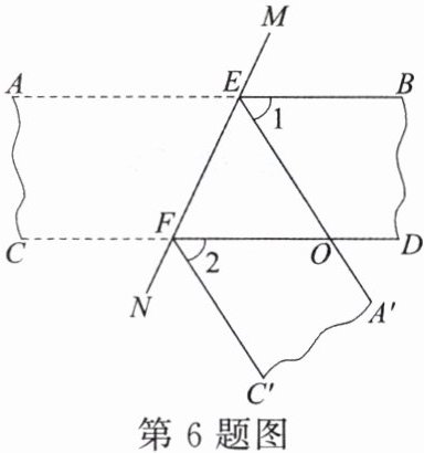 6. 如图,将一张上、下两边平行(即 $ AB // CD $)的纸带沿直线 $ MN $ 折叠,$ EF $ 为折痕。