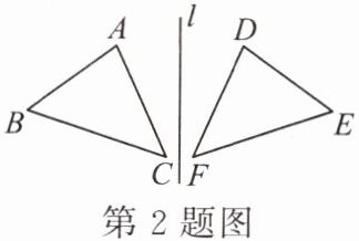 2. 如图,$\triangle ABC与\triangle DEF关于直线l$成轴对称,且$\angle A = 78^{\circ}$,$\angle F = 48^{\circ}$,则$\angle B$的度数为( )。