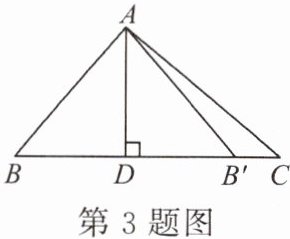 3. 如图,在$Rt\triangle ABC$中,$\angle BAC = 90^{\circ}$,$\angle B = 50^{\circ}$,$AD \perp BC$,垂足为$D$,$\triangle ADB与\triangle ADB'关于直线AD$对称,点$B的对称点是B'$,则$\angle CAB'$的度数为( )。