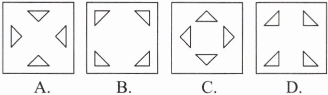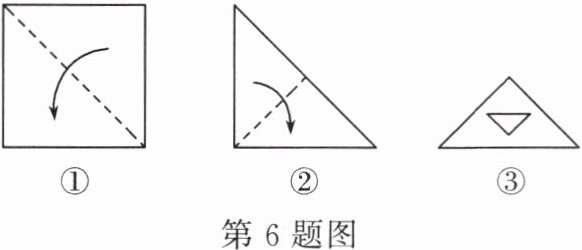 6. 把一个正方形纸片如图①、图②对折两次后,再如图③挖出一个三角形小孔,则展开后的图形是( )。