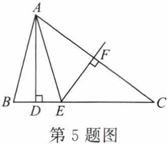 5. 如图,在 $ \triangle ABC $ 中,$ AD \perp BC $,$ EF $ 垂直平分 $ AC $,交 $ AC $ 于点 $ F $,交 $ BC $ 于点 $ E $,且 $ BD = DE $。