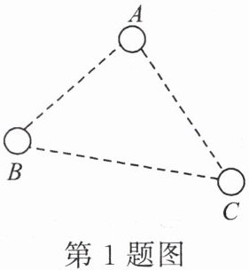 1. 如图,有A,B,C三个居民小区的位置成三角形,现决定在三个小区之间修建一个购物超市,使超市到三个小区的距离相等,则超市应建在( )。