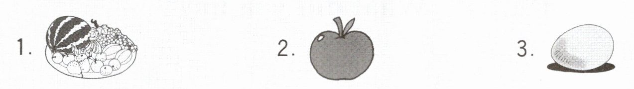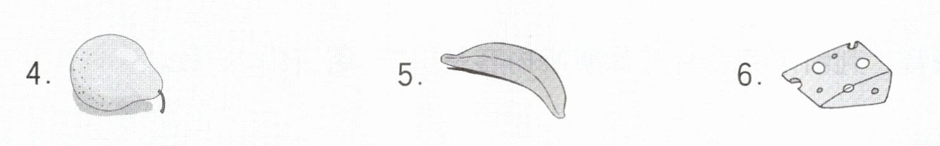 1.fruit 2.apple 3.egg 4.pear 5.banana 6.cheese