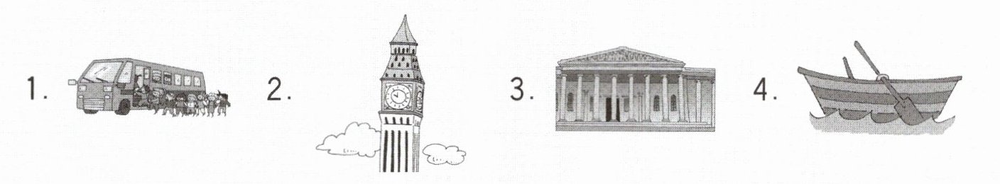 ) 2. A. London Eye B. Big Ben C. British Museum(