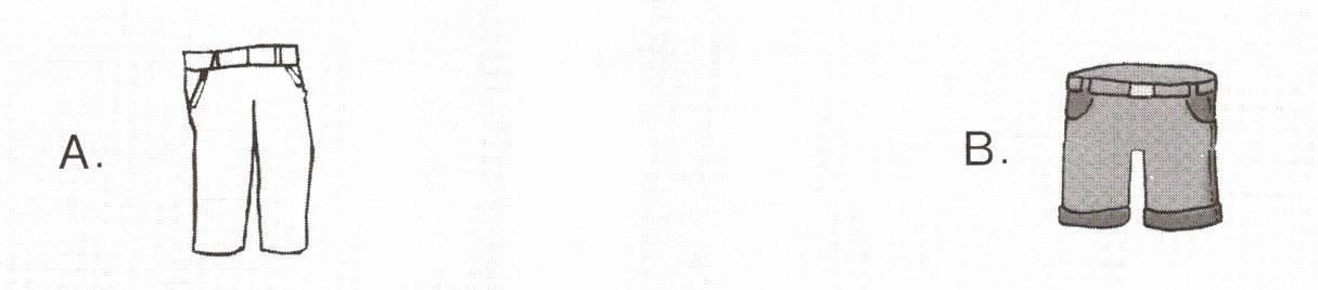 )1. Daming doesn’t wear his trousers today. He wears his shorts.What does Daming wear today?