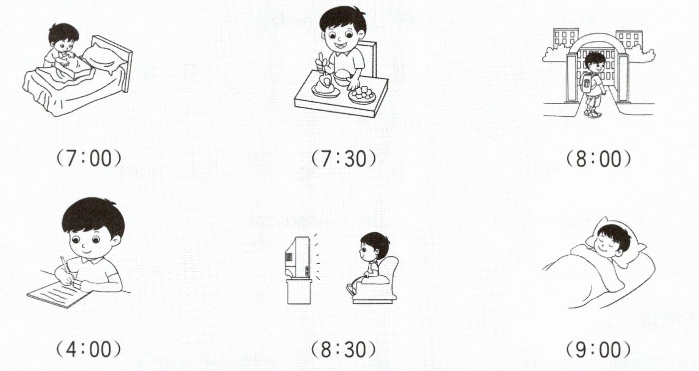 at 7:00 in the morning. He has breakfast at half past seven
