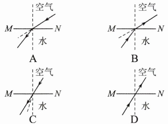 4. 某同学在家做了这样一个实验:如图所示,把一枚硬币放在一个空碗底,把碗放在桌子上并慢慢向远处推移,直到眼晴刚好看不到硬币为止。保持头部不动,妈妈帮着他缓缓地向碗中倒水,有趣的事情慢慢地出现了,他又重新看到了碗底的硬币。下面四幅光路图中,能对上述现象作出正确解释的是(