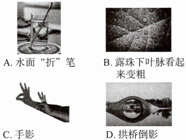 8. 下列四幅图片中,其中一幅所反映的光学原理与其他三幅不同的是(
