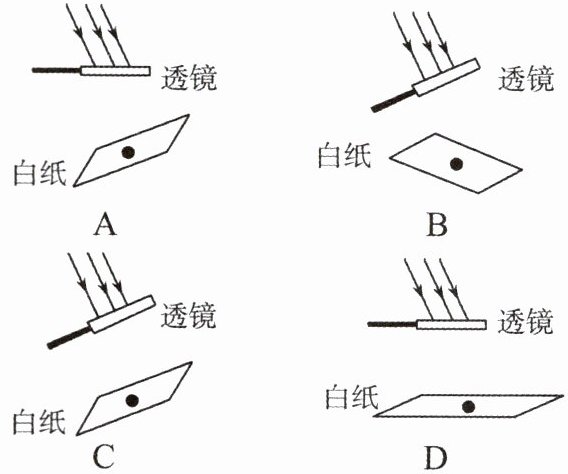 2. 某同学利用太阳光测量凸透镜的焦距,下列操作最合理的是( )