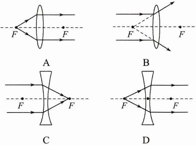 7. 如图所示,通过透镜的光路图正确的是(