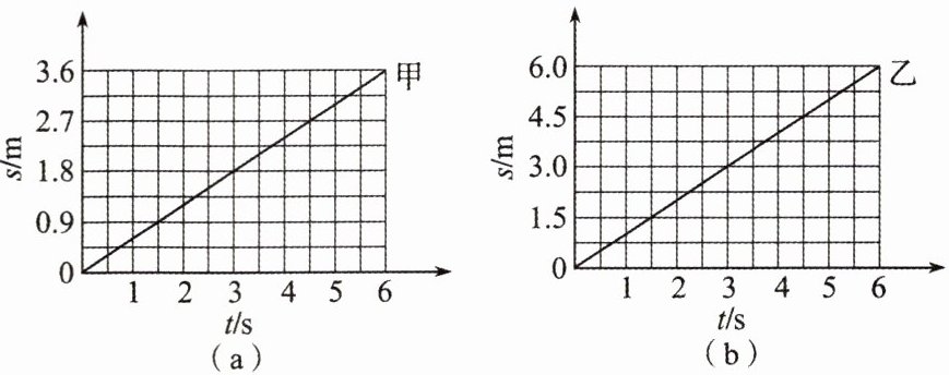 2. 甲、乙两车同时从P点出发,沿同一方向做匀速直线运动,两车的s - t图像分别如图(a)(b)所示。两车先后到达距P点18m的Q处,时间差为Δt,则(